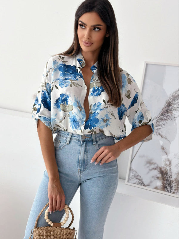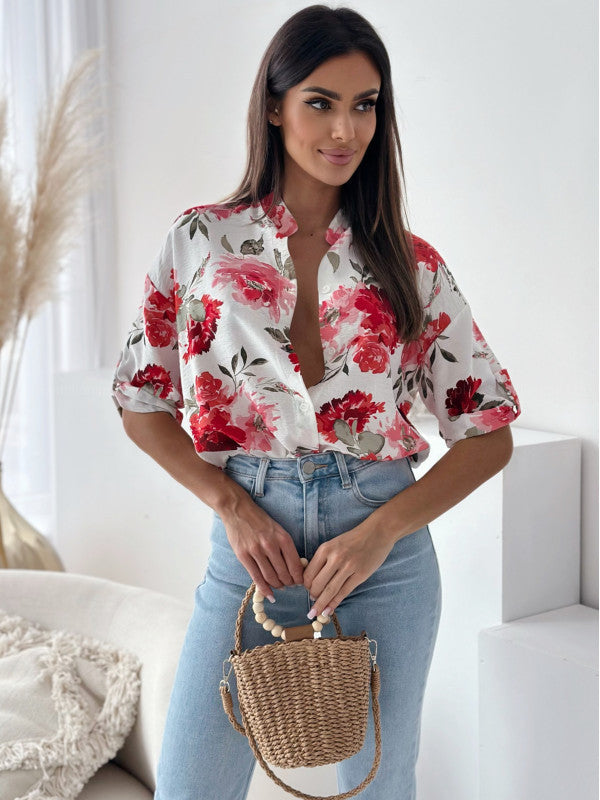 Color: red flowers, blue pattern